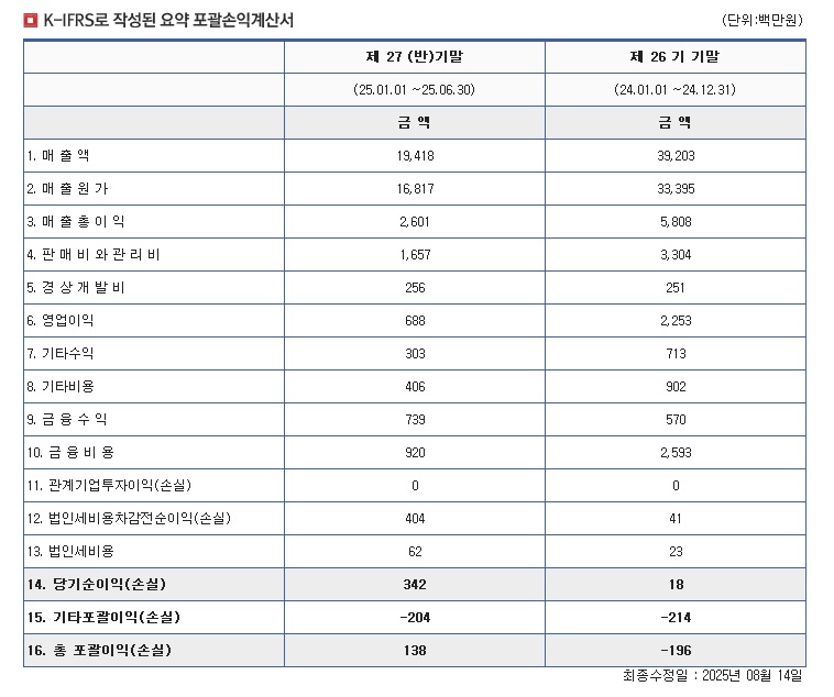 SP반도체통신 2025년 2분기 손익계산서